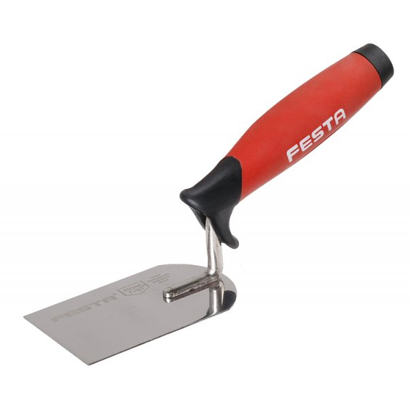Lžíce vymazávací nerezová FESTA 40 mm s gumovou ručkou. Kvalitní nerezová ocel. Slouží pro dokončovací práce ve stavebnictví.